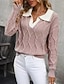 Dames Trui Casual Zacht Heldere kleur Geribd Overhemdkraag Gebreid Lange mouw Normale tops breien Buiten Dagelijks Weekend Blozend Roze Rood Herfst Winter