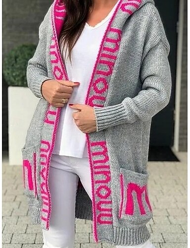 Dames Trui Vest Elegant Modieus Streetwear Brief Capuchon Open voorzijde Zak Gebreid Afdrukken Lange mouw Lange tops breien Buiten Dagelijks Weekend Blozend Roze Khaki Lente Herfst