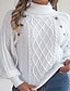 Dames Trui Casual Effen Kleur Geribd Coltrui Knop Gebreid Lange mouw Normale tops breien Uitgaan Weekend Khaki Grijs Herfst