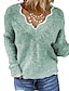 Dames Trui Stoppen Dagelijks Stijlvol Casual Effen Kleur Geribd V-hals Gebreid 3/4 mouw Normale tops breien Buiten Dagelijks Zwart Lichtgroen Zomer Lente