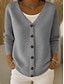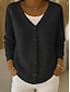 Dames Trui Casual Zacht Heldere kleur Geribd V-hals Knop Gebreid Lange mouw Normale tops breien Buiten Dagelijks Weekend Zwart Wit Herfst Winter