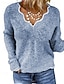 Dames Trui Casual Zacht Heldere kleur Geribd V-hals Gebreid Lange mouw Normale tops breien Buiten Dagelijks Weekend Wit blauw Herfst Winter