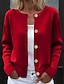Dames Trui Stoppen Modieus Effen Kleur Geribd Strakke ronde hals Knop Gebreid Lange mouw Normale tops breien Uitgaan Weekend Geel Blozend Roze Herfst
