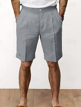 Voor heren Korte broek Linnen korte broek Geklede korte broek Zomer korte broeken Vetoketju Zak Knop Effen Comfort Zacht Buiten Dagelijks Uitgaan Modieus Casual Zwart Wit