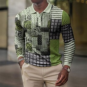 Voor heren Ruitjes Poloshirts met rits Golfshirt Lange mouw Poloshirt Overhemden met kraag Casual Vakantiekleding Formele kleding Festivalkleding 3D-afdrukken Polo met kwartrits Lente zomer Wit Groen