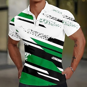 Voor heren Grafisch Verticale stroken Polo Korte mouw Poloshirt Overhemden met kraag Zakelijk informeel Buiten Sportkleding Alledaagse kleding 3D-afdrukken Knop Zomer blauw Bruin Groen
