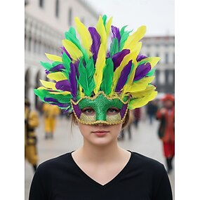 Vrouwen Gevederde Venetiaanse Maskerade Masker - Kleurrijke Mardi Gras Stijl Kostuum Accessoire voor Carnaval Feesten Cosplay Feestelijke Evenementen