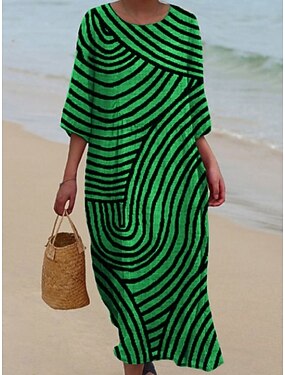 Dames Halflange jurk Casual jurk Jurk met print Modieus Modern Dagelijks Strand Weekend Normale pasvorm Lijn 3/4 mouw Strakke ronde hals blauw Rood Paars Groen Lente Herfst
