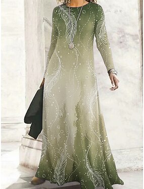 Dames Skelet Maxi Jurk Sheath Jurk A-Lijn Jurk Casual Boho Bruiloft Gast Strand Reguliere Pasvorm Bloemen Grafisch Lange Mouwen Ronde Hals Boot Hals Blauw Paars Oranje Groen Lente Fall Winter