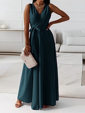 Dames Lange jurk maxi-jurk Zwarte jurk Schede jurk Elegant Modieus Modern Dagelijks Kantoor Feestdagen Normale pasvorm Effen Mouwloos V-hals blauw Wijn Rood Groen Zomer Lente Herfst Winter