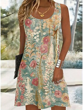 Dames Mini-jurk A lijn jurk Tank-jurk Elegant Stijlvol Casual Dagelijks Normale pasvorm Bloemig Grafisch Mouwloos U-hals Blozend Roze Rood Donkergroen Licht Paars Zomer Lente