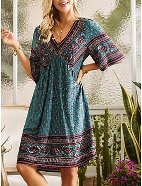 Dames Halflange jurk Casual jurk Zomerjurk Boho-jurk Streetwear Vakantie Straat Feestdagen Normale pasvorm Grafisch Korte mouw V-hals Blozend Roze Rood Marineblauw blauw Zomer