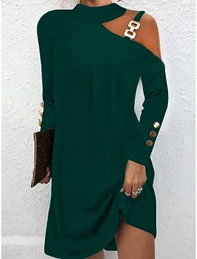 Dames Mini-jurk Casual jurk T shirt jurk Modern Dagelijks Buiten Feestdagen Normale pasvorm Effen Lange mouw koude schouder blauw Bruin Groen Rode roos Lente Herfst