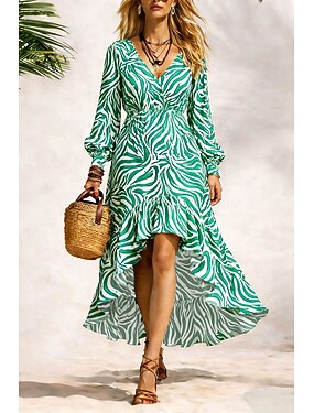 Dames Maxi-jurk Geplooide jurk Fit And Flare-jurk Verjaardag Casual Formeel Afspraakje Normale pasvorm Grafisch Luipaard Lange mouw V-hals Wit Paars Groen Khaki Zomer Lente