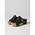 Dames zwarte wedge slippers met studs - casual schoenen met gespdetails en kurken zool, ideaal voor parkbezoekjes, brunchafspraken, winkelen en gezellige terrasjes.