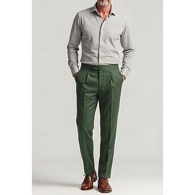 Heren Katoenmix Linnen Pakken Vrijetijdsbroek Dagelijks liiketoiminta Elegant Modieus Formeel Donker Marine Oceaanblauw Donkergroen Lente zomer Broeken Effen Kleur Normale pasvorm Lang Inelastisch