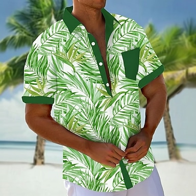 Voor heren Kokosnootboom Natuur & Landschappen Tropische planten Hawaiiaans overhemd Overhemd met knopen Aloha-shirt Korte mouw Hawaii Vakantie Zomer Lente Strijkijzer 3D-afdrukken shirts met kraag
