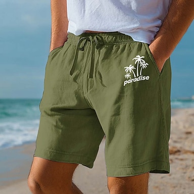 kokospalm heren katoenen linnen shorts zomer Hawaiiaanse shorts strandshorts print trekkoord elastische taille ademend zacht 20% linnen shorts casual dagelijks vakantie streetwear