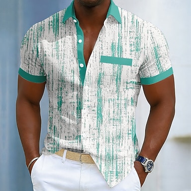 Voor heren Meetkundig Normaal shirt Overhemd met knopen Korte mouw Casual Causaal Casual Zomer Lente V-hals Knop Blozend Roze blauw Groen