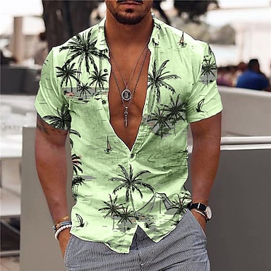 Voor heren Palmblad Kokospalm Tropische planten Satijnen overhemd Hawaiiaanse shirts Aloha-shirt Korte mouw Hawaii Dagelijks Vakantie Zomer Lente Strijkijzer Overhemden met kraag 3D-afdrukken