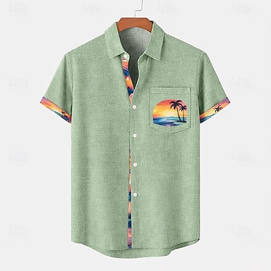 Voor heren Overhemd Linnen overhemd Zomer overhemd Strand hemd Overhemd met knopen Kokosnootboom Feestdagen Alledaagse kleding blauw Blozend Roze Groen Khaki Korte mouw Strijkijzer Zomer Kleding