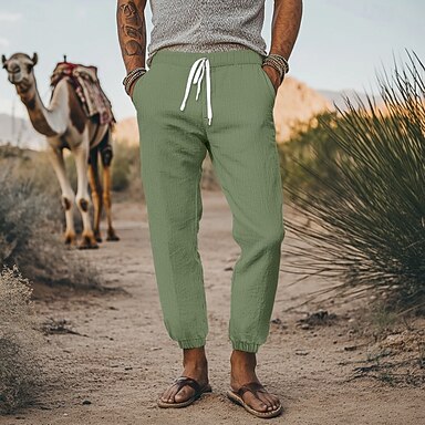 Voor heren Linnen broek Zomerbroek Wijde broek Trekkoord Zak Elastische taille Effen Comfort Ademend Volledige lengte Casual Dagelijks Buiten Vakantie Modieus Zwart Groen Inelastisch
