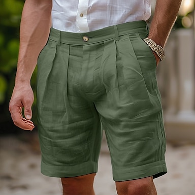 Voor heren Korte broek Linnen korte broek Geklede korte broek Zomer korte broeken Geplooide korte broek Zak Plooien Recht been Effen Comfort Ademend Knielengte Formeel Werk Dagelijks Modieus