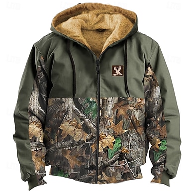 Voor heren camouflage Camouflage Kleur Trui met capuchon Sweatshirt Modieus Westerse cowboy Lange mouw Strakke ronde hals Vakantie Streetwear Groen Rits omhoog Herfst Winter Ontwerper S M L XL XXL XXL