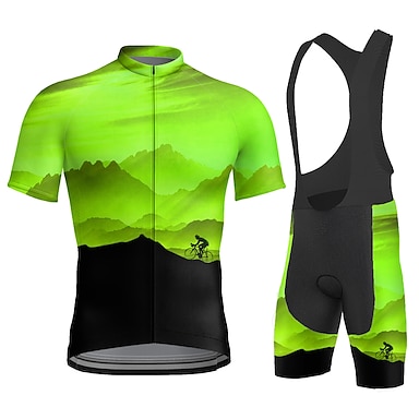 Voor heren Wielrenshirt met strakke shorts Fietsshirt set Korte mouw Bergracen Wegwielrennen Zomer Groen Geometrisch Fietsen Zonbescherming UV-bestendig 3D-pad Snel Drogend Reflecterende strips
