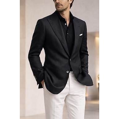 Voor heren Linnen blazer Inkeping kraag Modieus Klassiek Casual Effen Linnen blazer Zwart Wit Blozend Roze Getailleerd Enkele rij knopen met twee knopen