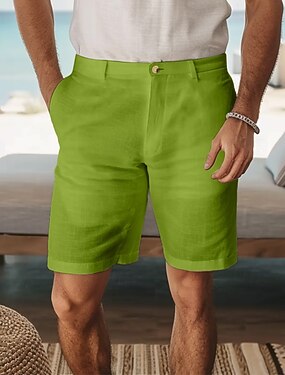 Voor heren Korte broek Linnen korte broek Geklede korte broek Zomer korte broeken Strandshorts Zak Knop Recht been Effen Comfort Ademend Knielengte Vakantie Dagelijks Feestdagen Modieus Smart Casual