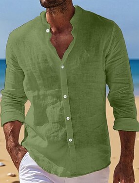 Voor heren Overhemd Linnen overhemd Zomer overhemd Strand Kleding Overhemd met knopen Effen Dagelijks Streetwear blauw Zwart Wit Blozend Roze Lange mouw Band Kraag Lente zomer Zomer Kleding