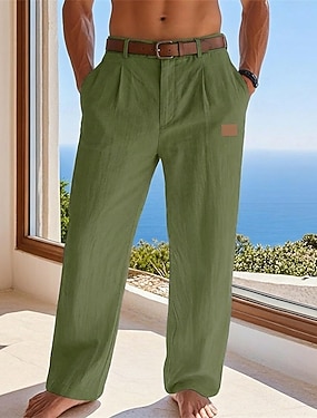 Voor heren Linnen broek Broek Zomerbroek Zak Recht been Effen Comfort Ademend Casual Dagelijks Feestdagen Modieus Klassieke Stijl Zwart blauw