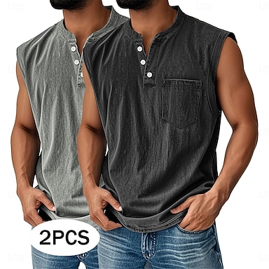 Voor heren Singlet Vest Top Onderhemd Mouwloos shirt Mouwloos Henley Zomer Effen Modieus Basic Retro vintage Zak 2-stuks Bleek Casual Vakantie Straat A B C Top T-shirt voor mannen