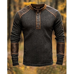 Voor heren T-shirt met knopen Henley-shirt Trui-sweatshirt Lange mouw Overhemd Spijkerbroekblauw Wit Marineblauw Oranje Bruin Kleding Essentieel Wafelstof