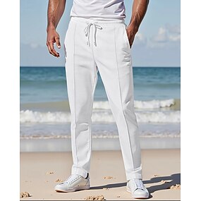 Voor heren Joggingbroeken Broek Geplooide broek Wafel broek Zak Elastische taille Trekkoord Effen Comfort Buitensporten Dagelijks Modieus Casual Zwart Wit Micro-elastisch
