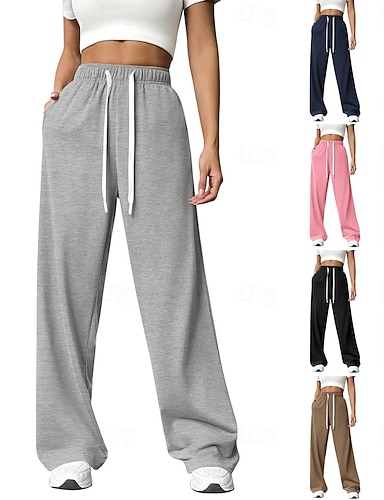 Dames Breed Been Chinese Vakantie Streetwear Casual Volledige lengte Middelhoge taille Effen Trekkoord Comfortabel Comfort Micro-elastisch Buiten Vakantie Straat Donkergrijs Zwart Wit Licht Grijs