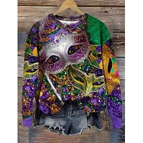 Carnaval Dames Pullover Sweatshirt Grafisch Mode Casual Lange Mouwen Crew Neck Reguliere Tops Street Dagelijkse Wearprint Paars Groen Lente Fall Winter
