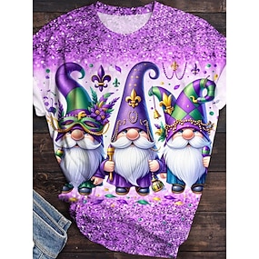 Mardi gras Dames T-shirt Afdrukken Grafisch Brief Wijnoogst Bohemen Vintage Modieus Korte mouw Lange mouw Strakke ronde hals Normale tops Dagelijks Weekend Zwart Donkergroen Paars Groen Beige Zomer