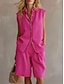 Dames Tweedelige sets Shorts Sets Mouwloos Overhemdkraag Grafisch Kleurenblok Dagelijks Casual Dagelijks blauw Fuchsia Khaki Zomer Ruim Passend