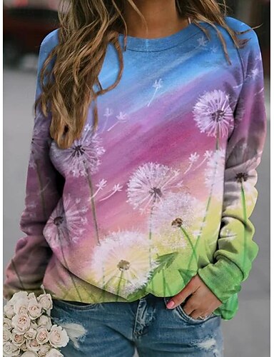 Dames Trui-sweatshirt Afdrukken Bloemig Grafisch Casual Lange mouw Strakke ronde hals Normale tops Casual Straat Feestdagen blauw Blozend Roze Donker Roze Hemelsblauw Paars Lente Winter