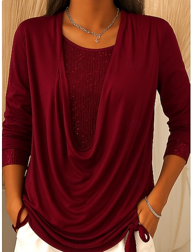 Dames Blouse Pailletten Lapwerk Effen Kleur Stijlvol Casual Lange mouw Strakke ronde hals Normale tops Dagelijks blauw Blozend Roze Wijn Khaki Lente Herfst Winter