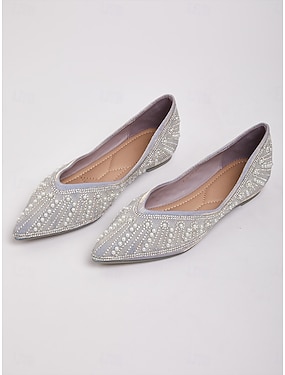 Dames Strass Platte hak Gepuntte Teen Elegant Grijs