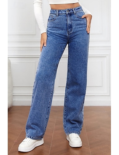 Dames Jeans Breed Been Chinese Vakantie Vintage Streetwear Volledige lengte Middelhoge taille Effen Zak Elastische taille Houd Warm Inelastisch Micro-elastisch Buiten Vakantie Straat Diep Blauw