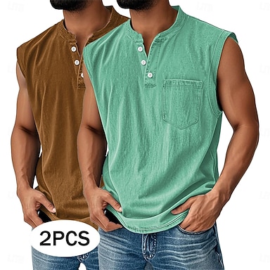 Voor heren Singlet Vest Top Onderhemd Mouwloos shirt Mouwloos Henley Zomer Effen Modieus Basic Retro vintage Zak 2-stuks Bleek Casual Vakantie Straat A B C Top T-shirt voor mannen