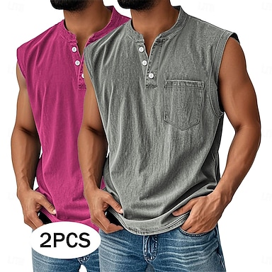 Voor heren Singlet Vest Top Onderhemd Mouwloos shirt Mouwloos Henley Zomer Effen Modieus Basic Retro vintage Zak 2-stuks Bleek Casual Vakantie Straat A B C Top T-shirt voor mannen