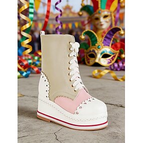 Vrouwen Mardi Gras Roze Platform Wedge Laarzen met Golfrand – Zoete Lolita Stijl Veterschoenen voor Anime Cosplay Carnaval Parades