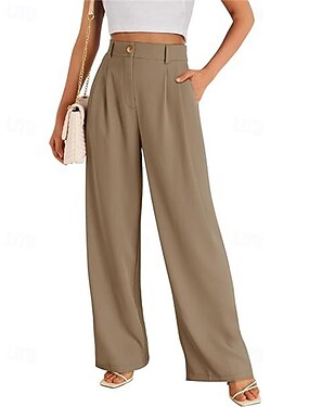 Dames Breed Been Broeken Streetwear Casual Volledige lengte Hoge taille Effen Kleur Zak Ademend Zacht Micro-elastisch Vakantie Straat Alledaagse kleding Zwart Rood Bruin Khaki Lente Herfst Normale