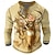 Voor heren Amerikaanse Amerikaanse vlag Hert Henley-shirt T-shirts Lange mouw Vintage Modieus Stijlvol Buiten Casual Dagelijks Herfst Lente & Herfst bruine thee Khaki Henley Kraag Henley