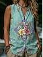 Dames Overhemd Knop Afdrukken Bloemig Grafisch Vintage Stijlvol Modern Mouwloos Opstaand Normale tops Casual Dagelijks blauw Groen Zomer Lente